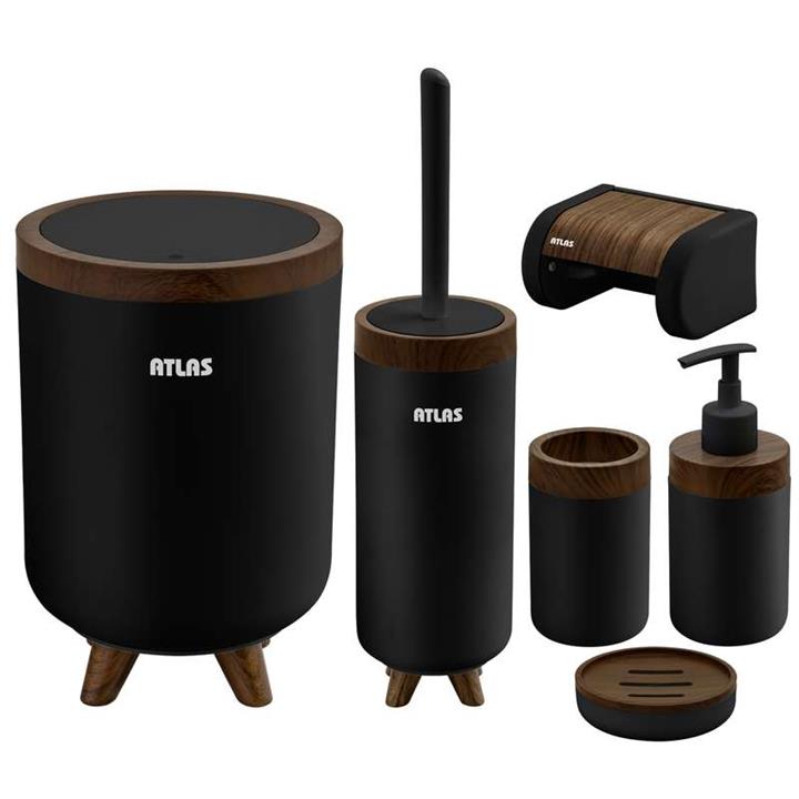ست سرویس بهداشتی 6 تکه اطلس مدل سلین طرح چوب