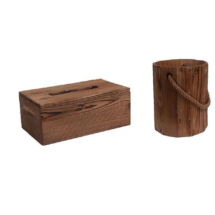 ست سطل و جادستمال کاغذی چوبی رنگ قهوه ای
