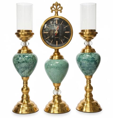 ست شمعدان و ساعت رومیزی مشکی و سبز طلایی قطر ۵۰ .N