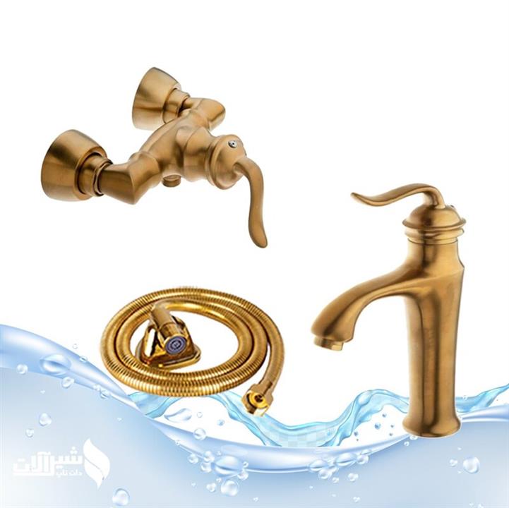 ست شیرآلات اهرمی بامبو طلایی مات مجموعه 3 عددی روکش PVD