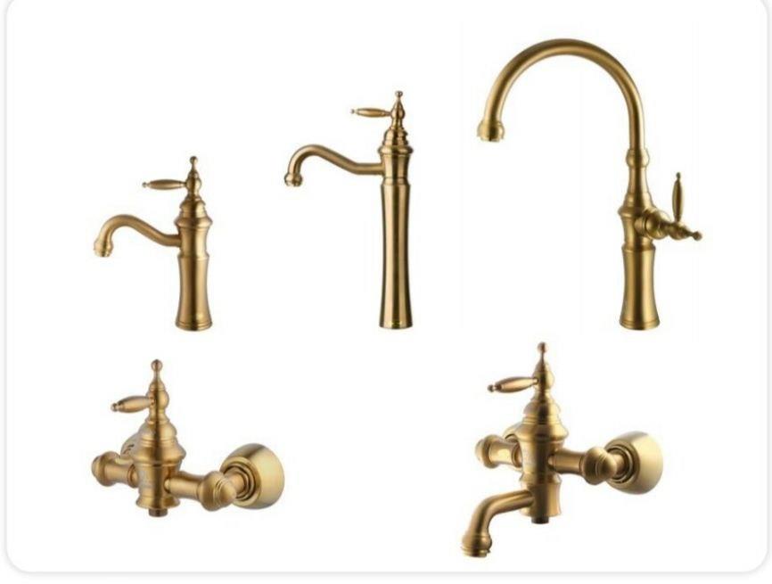 ست شیرآلات درخشان مدل بل طلایی مات مجموعه ۴ عددی روشویی پای...