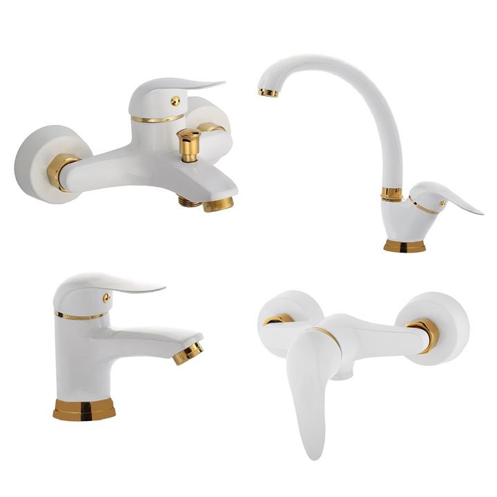 ست چهارتیکه شیرآلات فراست پویا مدل صدف رنگ سفیدطلایی