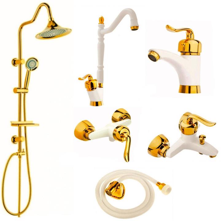 ست شیرآلات آیدا مدل بامبو لوکس مجموعه 6 عددی طلایی براق