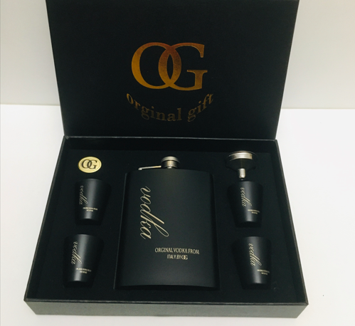 ست قمقمه جیبی چهار شات استیل مشکی مدل vodka