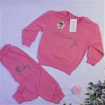 ست بلوز و شلوار دخترانه پاییزه رنگ صورتی باگلدوزی و گل برجسته جنس دورس سایز 32 و 37 کد 1018