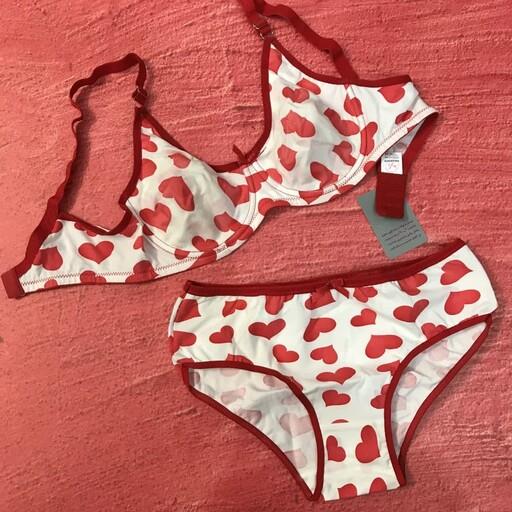 ست لباس زیر زنانه لباسزیر شورت و سوتین نخی دخترانه برند شارمین سفید قلبی فنردار