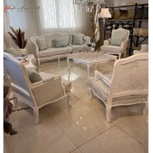 ست مبلمان 7 نفره با ناهار خوری 8 نفره، رنگ بدنه و پارچه به سلیقه شما با طراحی جدید و زیبا