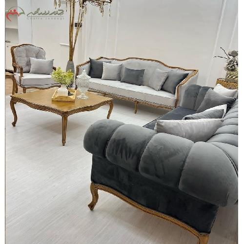 ست مبل و میز ناهار خوری جنس بدنه از چوب راش و فوم HR ضخیم با نشیمن راحت