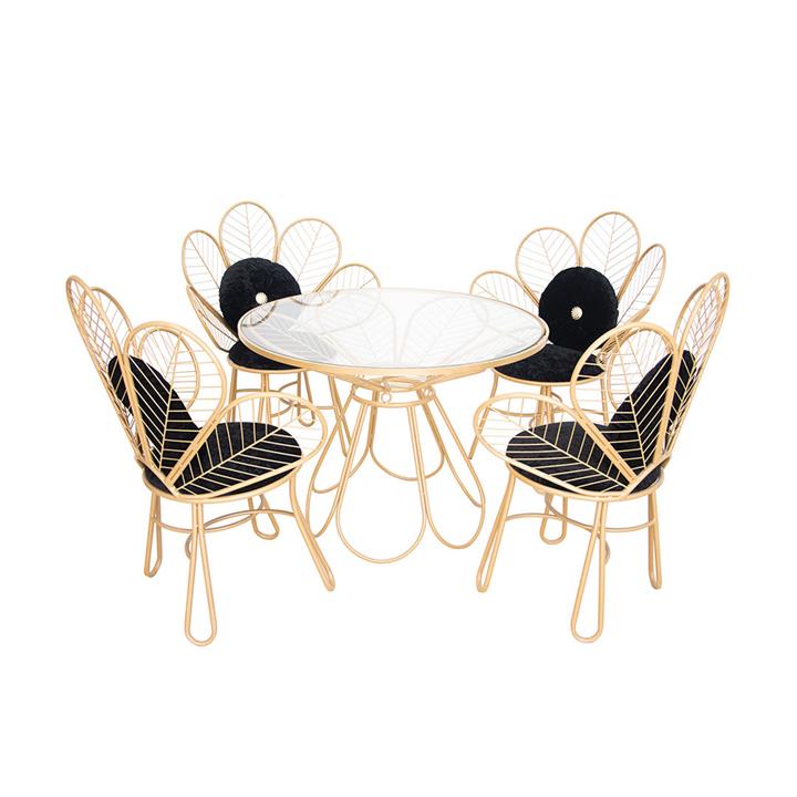 میز ناهارخوری ۴ نفره کمجا چوبی چستر طلایی