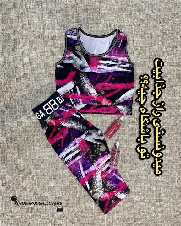 ست ورزشی تاپ و شلوارک کمرگنی زنانه کد 0519
