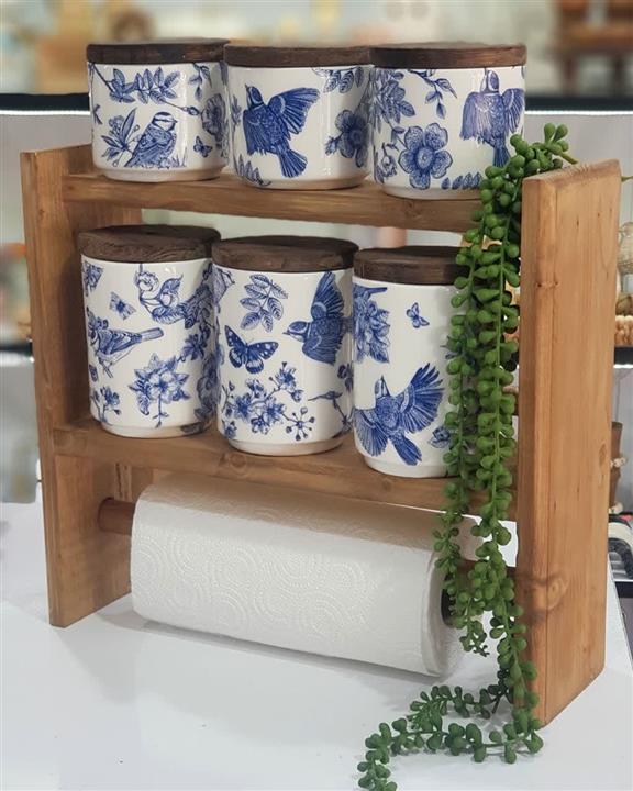 ست پاسماوری سرامیکی پرنده آبی درب چوبی کد c0.192