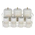 - دارای 4 عدد جای ادویه به ابعاد 7×11×7 سانتی متر \r\n- دارای 3 عدد جای قهوه شکر و چای به ابعاد 12×17×12 سانتی متر