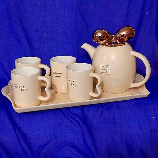 سرویس چای خوری سرامیک قوری پایون4لیوان وسینی کادوی