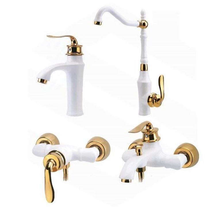 ست کامل 4 تایی شیرآلات هلن سفید طلایی ایران گروه(پس کرایه)