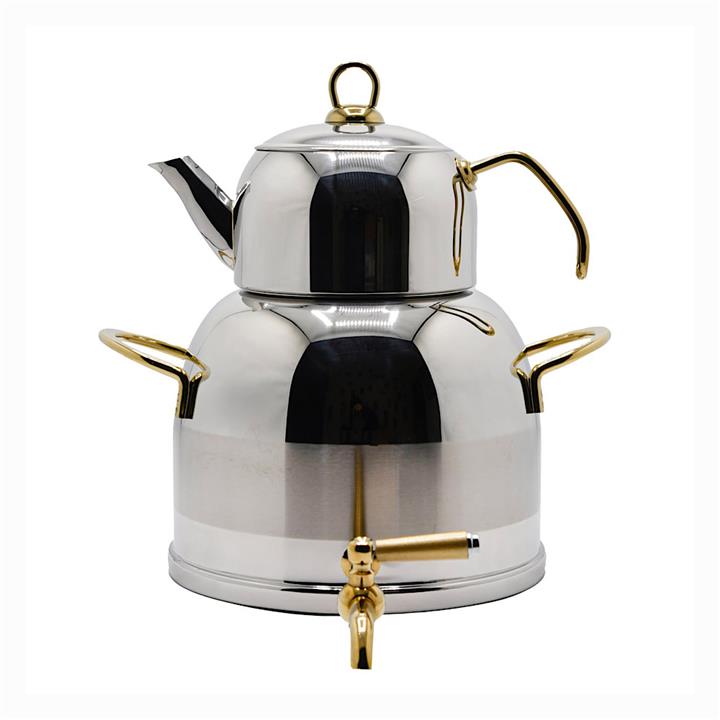 کتری و قوری استیل دسته طلایی 5 لیتر یونیک 7274