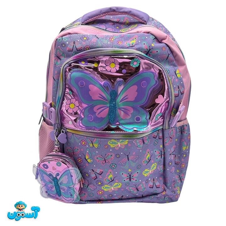 ست کوله پشتی به همراه کیف ظرف غذا وست طرح پروانه 2092