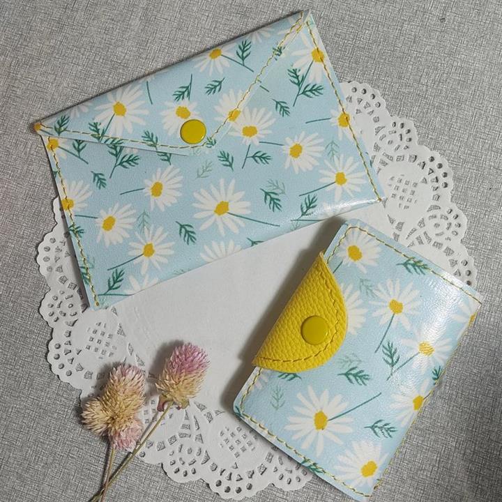 ست کیف جاکارتی آلبوم دار و جادستمالی بابونه زمینه آبی