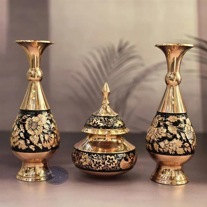 ست گلدان 25 و قندان دخلی کوچک مس و تراش کاظمی