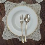 ست 10 نفره ی زیر بشقابی و زیرلیوانی بزرگ و کوچک به همراه حلقه ی دستمال سفره قیطان تزیین شده با مروارید تخت