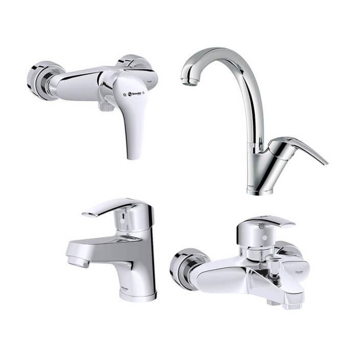 -پاکیزگی آسان -ساختار ارگونومیک -نصب سریع و آسان -کنترل کیفیت100% -دارای پرلاتور کاهنده مصرف آب -کارتریج سرامیکی مقاوم در برابر دما و فشار بالا -رسوب پذیری کمتر سطح به دلیل طراحی خاص بدنه -این ست شامل شیر ظرفشویی،شیر روشویی، شیر توالت، شیر حمام می باشد.