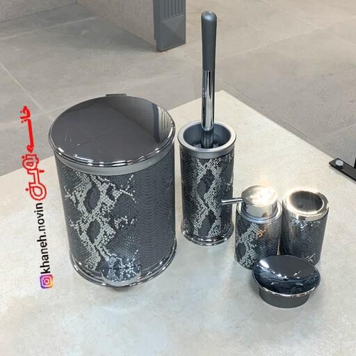 ست 5 پارچه سرویس بهداشتی بتیس با روکش چرم پوست ماری رنگ طوسی کروم (ارسال رایگان)