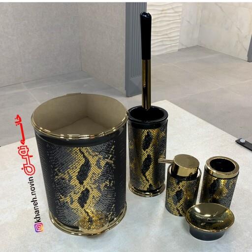 ست 5 پارچه سرویس بهداشتی بتیس با روکش چرم پوست ماری رنگ مشکی طلایی (ارسال رایگان)