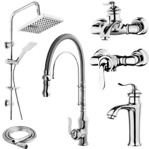 ست 6 تایی شیرآلات اهرمی هلن کروم با شیر ظرفشویی شاوری فنر دا...