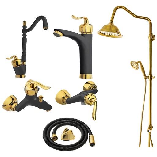 ست 6 تایی شیرآلات هلن مشکی طلایی و علم دوش شیپوری و شیلنگ تو...