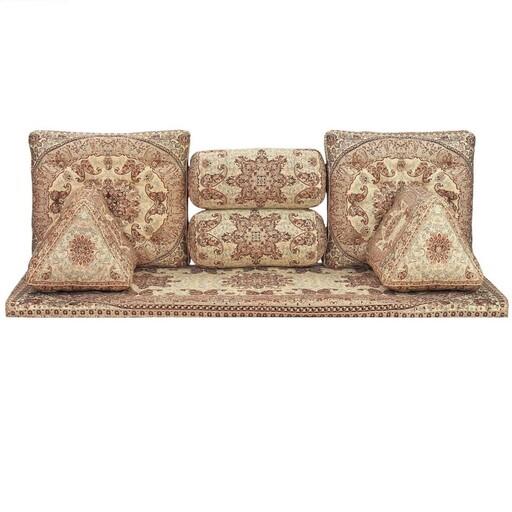 پشتی سنتی شاه نشین ترمه طرح شاهسوند – ست ۷ تکه کرم