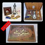 بسته فرهنگی سوغات کربلا ( عباس ابن علی)7 عنوان سنگ حرم قاب فرش وعطر حرم وآب سرداب حرم حضرت عباس و تسبیح مهر تربت کربلا
