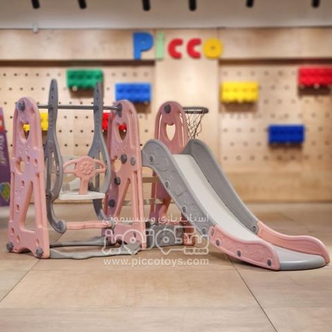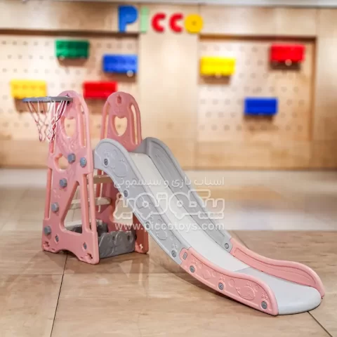 سرسره کودک هپی صورتی با حلقه بسکتبال کد PS5147