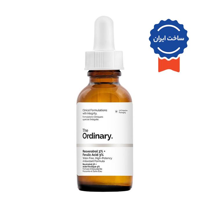 مشخصات فنی سرم آنتی اکسیدان رسوراترول 3% و اسید فرولیک 3% حجم 30میل د اوردینری