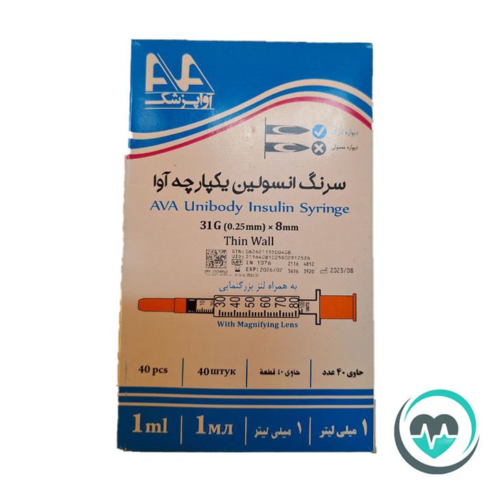 سرنگ انسولین یک سی سی آوا – گیج 30 -بسته بندی 40 عددی