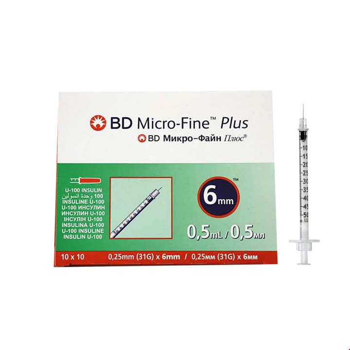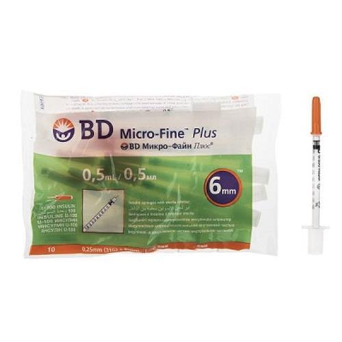 سرنگ انسولین BD ظرفیت نیم سی سی(بسته 10 عددی)