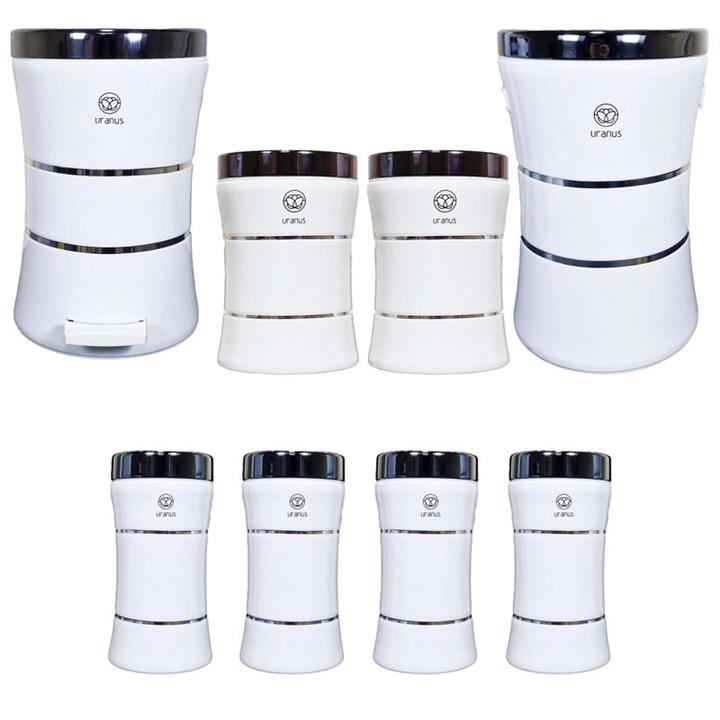 این سرویس شامل: سطل زباله ۱عدد سطل برنج ۱عدد سطل شکر۲عدد بانکه حبوبات ۴عدد