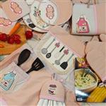 سرویس آشپزخانه کتان 20 تکه رزین تاژ طرح رابید صورتی
