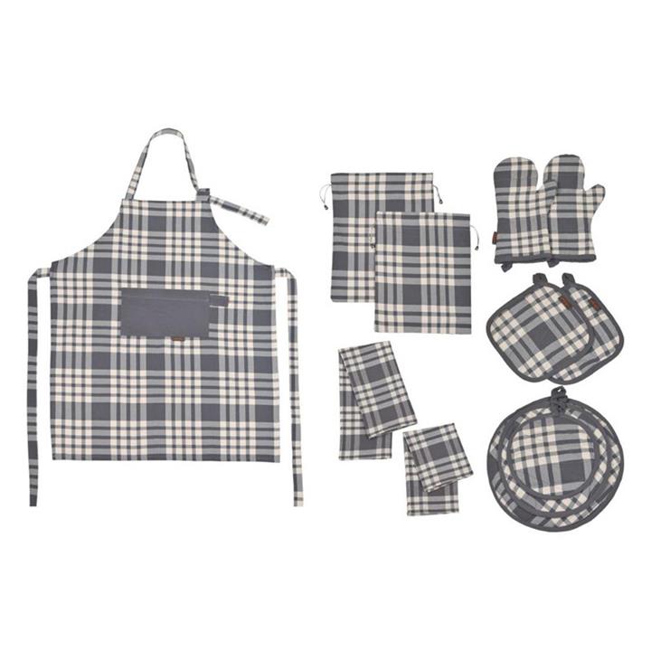 سه عدد دمکنی , یک عدد دستکش فر , دو عدد دستمال سفره , دو عدد کیسه سبزی , یک عدد پیشبند , دو عدد دستگیره