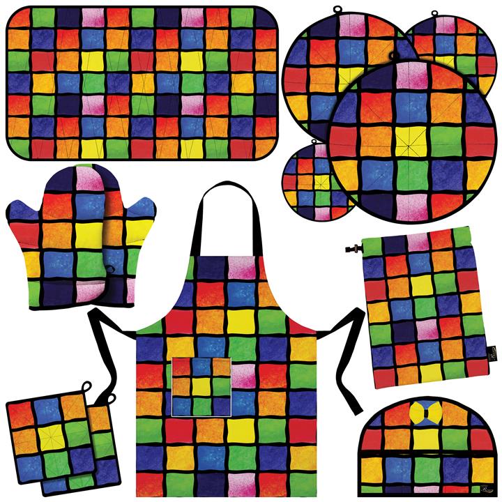 آبگیر کنار سینک , دو عدد دستگیره , سه عدد دمکنی , یک جفت دستکش فر , یک عدد پیشبند , یک عدد دمکنی , یک عدد روقوری , یک عدد کیسه سبزی