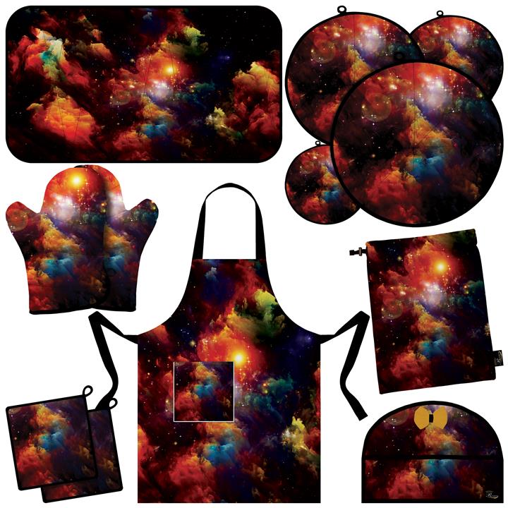 آبگیر کنار سینک , دو عدد دستگیره , سه عدد دمکنی , یک جفت دستکش فر , یک عدد پیشبند , یک عدد دمکنی , یک عدد روقوری , یک عدد کیسه سبزی