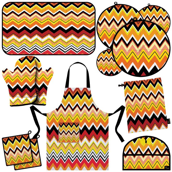 یک عدد روقوری , یک عدد دمکنی , سه عدد دمکنی , یک جفت دستکش فر , یک عدد کیسه سبزی , یک عدد پیشبند , آبگیر کنار سینک , دو عدد دستگیره