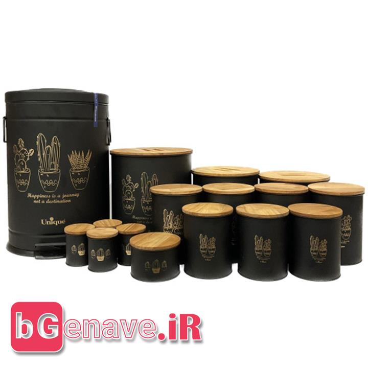 سرویس آشپزخانه 16 پارچه درب چوب مدل الیزابت رنگ مشکی کاکتوس طلایی برند یونیک کد 9022