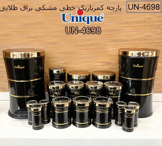 مشخصات فنی سرویس آشپزخانه 18 پارچه کمر باریک خطی مشکی براق طلایی یونیک کد UN-4698