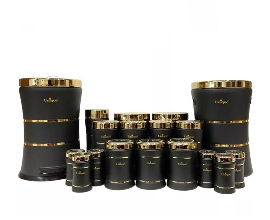 مشخصات فنی سرویس آشپزخانه 18 پارچه یونیک کمر باریک خطی مشکی مات طلایی مدل UN-4697