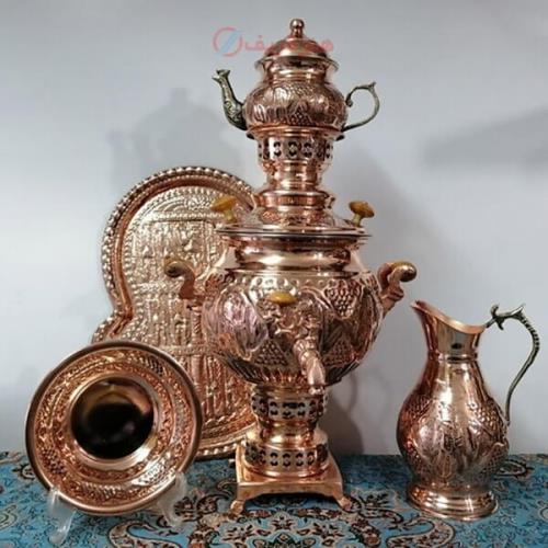 سرویس سماور زغالی مسی 5 پارچه ظرفیت ۴ لیتر
