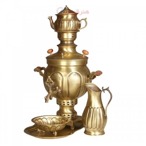 سرویس سماور زغالی 5 پارچه برنجی مدل آینه ای ظرفیت 6 لیتر