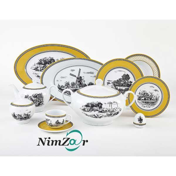 سرویس غذاخوری زرین 102 پارچه 12 نفره سری ایتالیا اف طرح ویلیج درجه یک