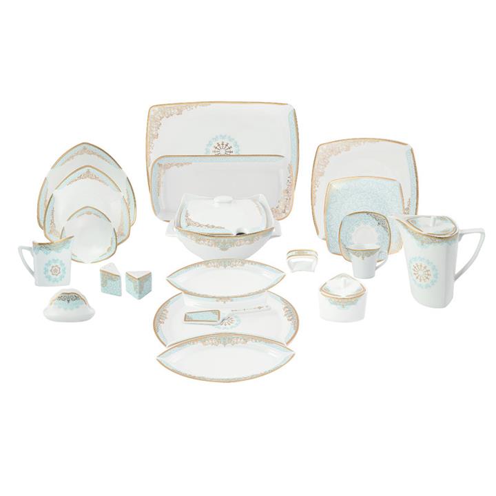 این سرویس شامل اقلام جای دستمال ، حلقه ، کفگیر و ست پذیرایی نیز می باشد.\r\nجای دستمال : 2عدد\r\nحلقه دستمال : 6عدد\r\nکفگیر : 1عدد\r\nست پذیرایی : 3عدد دیس پازلی