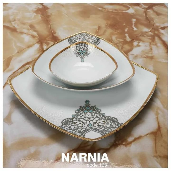 مشخصات فنی سرویس غذاخوری 12 نفره 105 پارچه چینی پردیس کاشان قالب پاریس طرح نارنیا فیروزه ای 165I