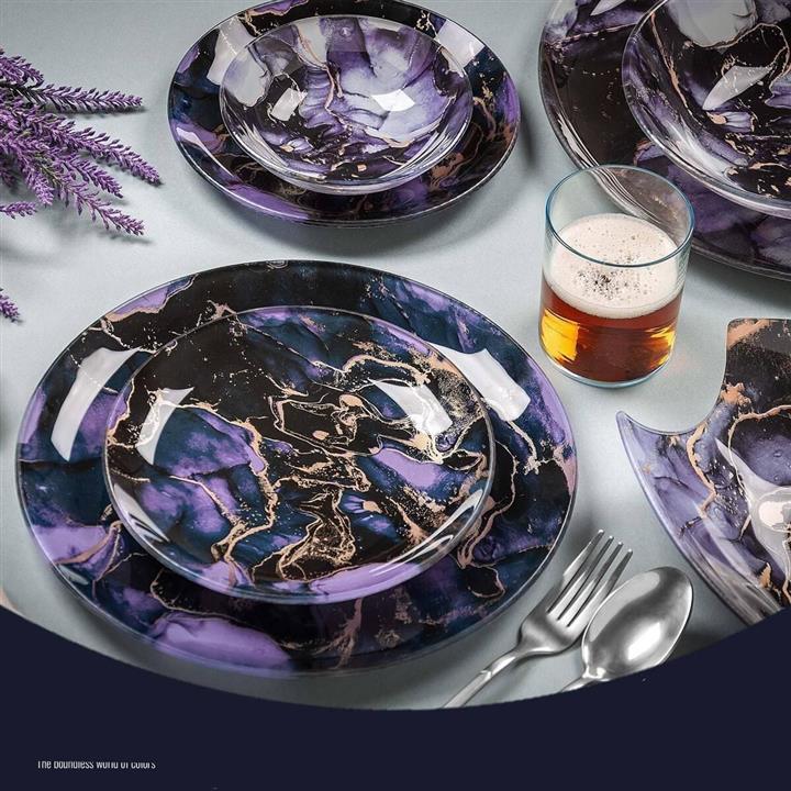 سرویس غذاخوری 25 پارچه ظروف شیشه ای مورانو بنفش آرکوفام