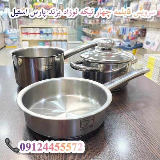 سرویس قابلمه نوزاد 4 پارچه پارس استیل مدل دسته فلزی